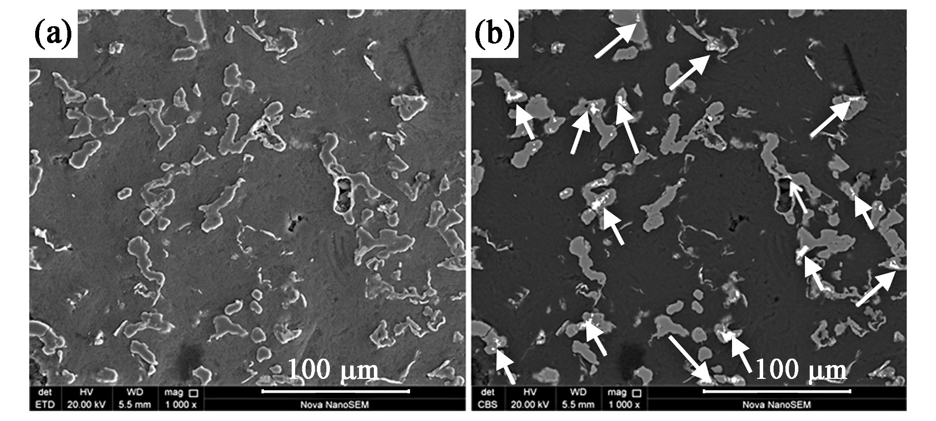 圖 4 磨平后 GM 樣品的電子( a)與背散射電子( b) 形貌圖(1 000 倍)