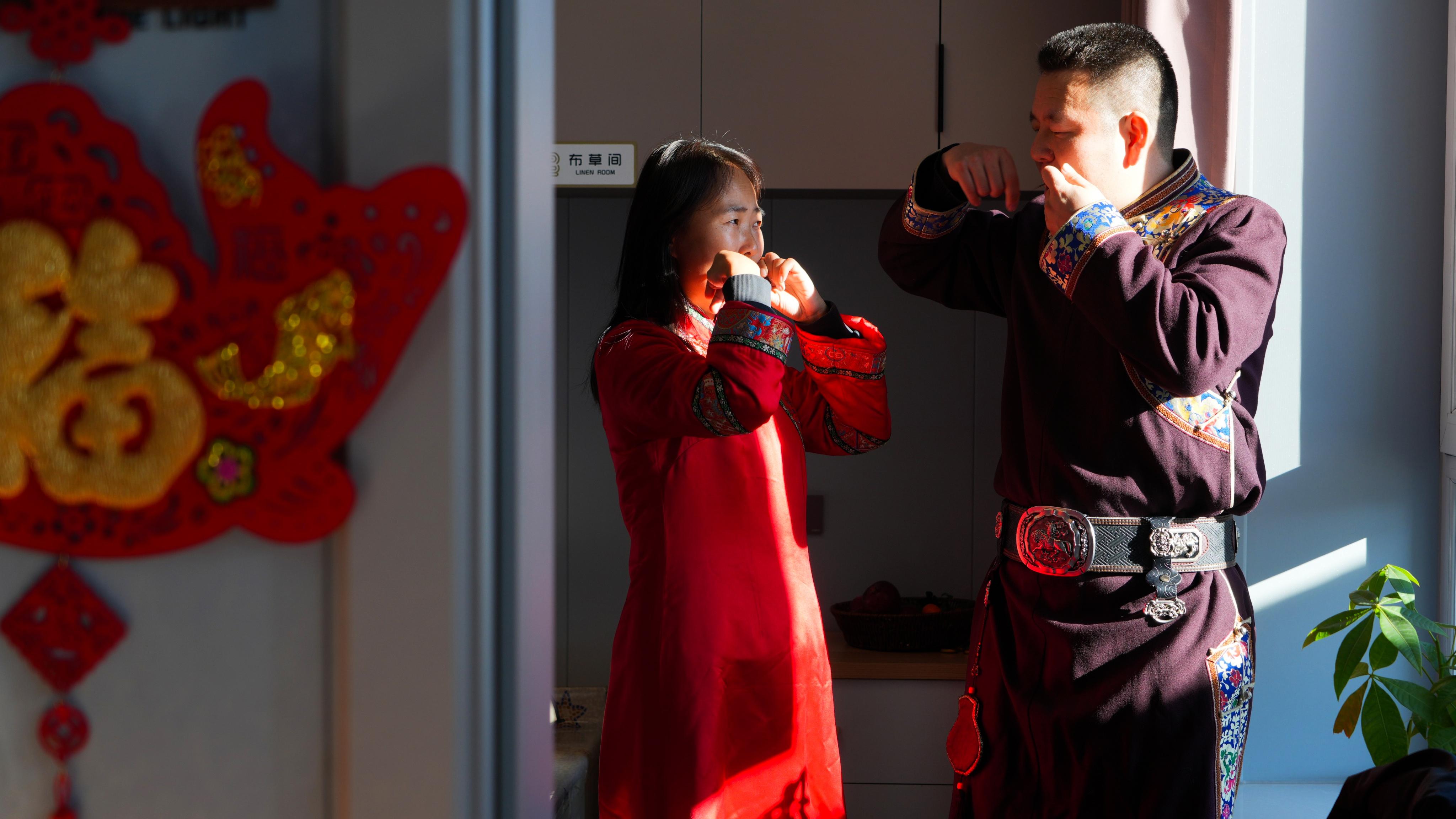 “達斡爾族小年的規(guī)矩是得貼福字、包餃子,這樣福氣才能留得??!”郭勇一邊招呼鄰居幫忙布置房間,一邊笑著說,“今年我愛人在外地,小年回不來,多虧了這些好鄰居,雖然人不齊,但‘年味’一點不能少?!?/p>