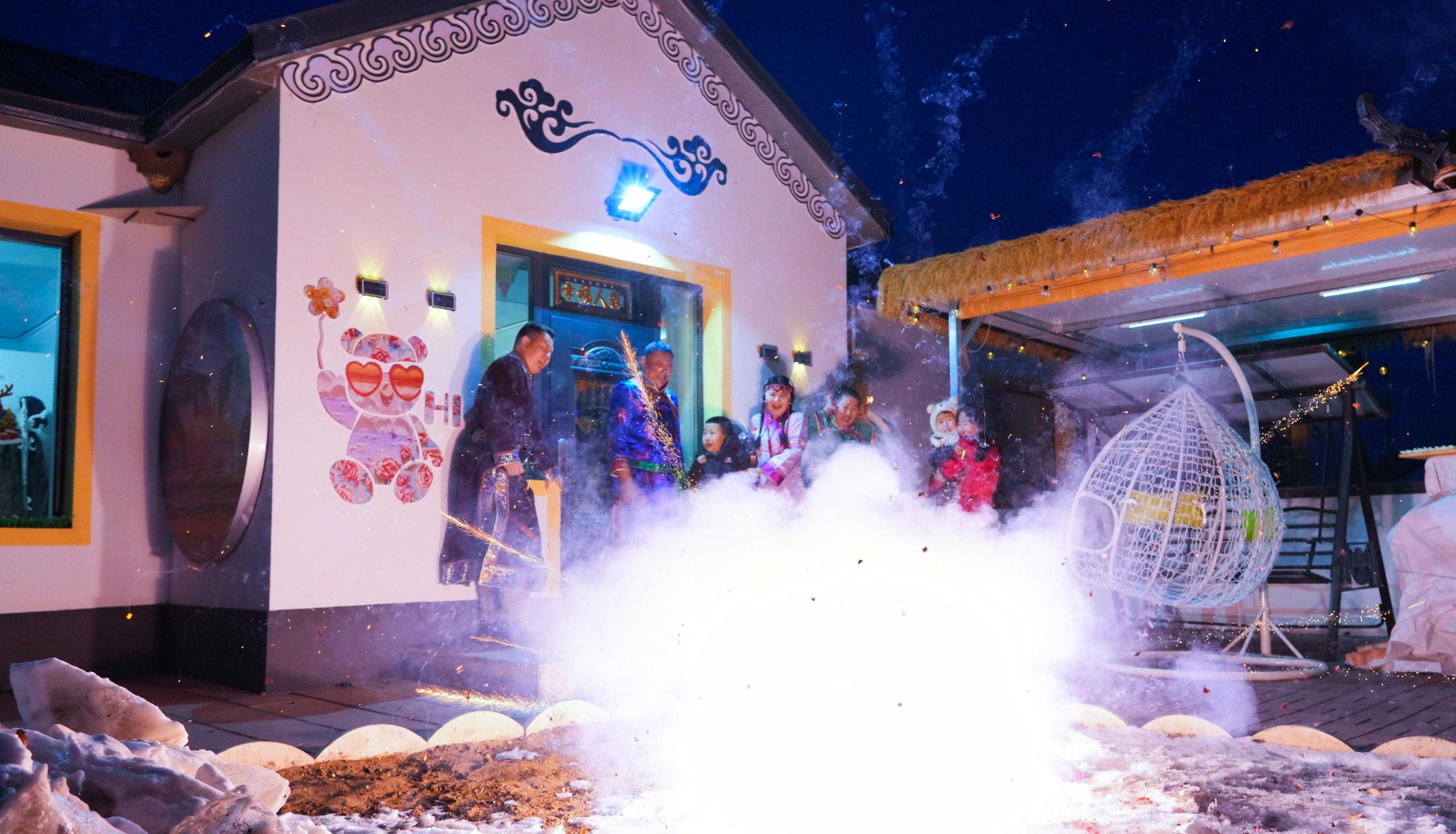 嫩江江畔的氣溫降至零下15攝氏度,冰道凝霜,寒風(fēng)凜冽。在郭勇開設(shè)的“拾光庭院”民宿內(nèi),卻是另一番火熱景象。紅燈高懸,福字報喜、暖意融融,空氣中處處彌漫著“年”的氣息。